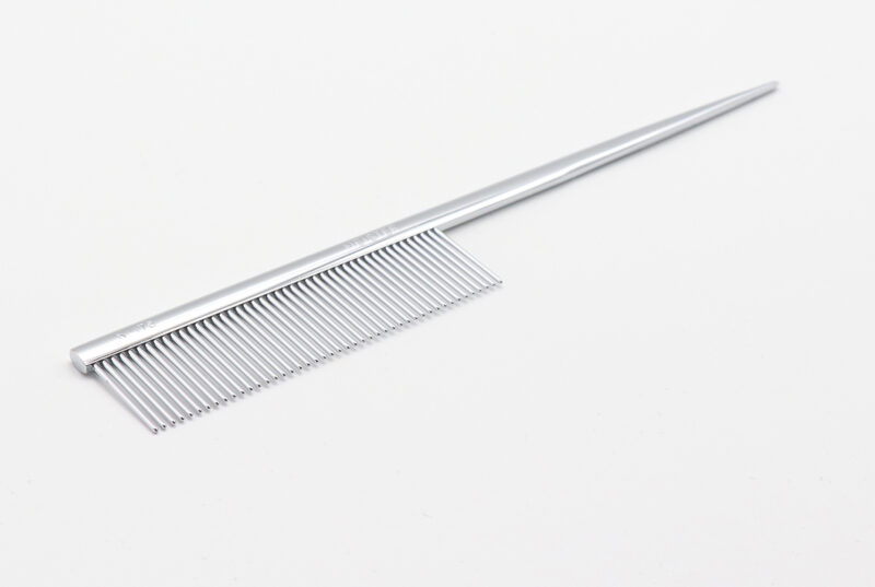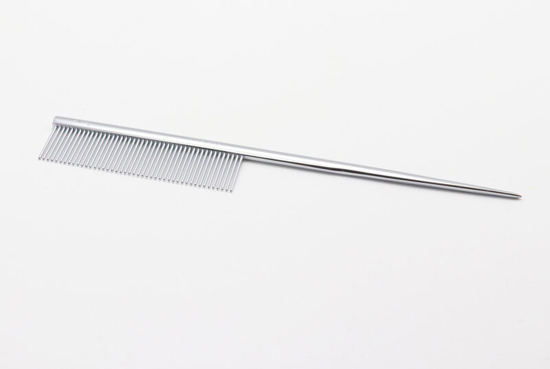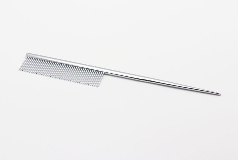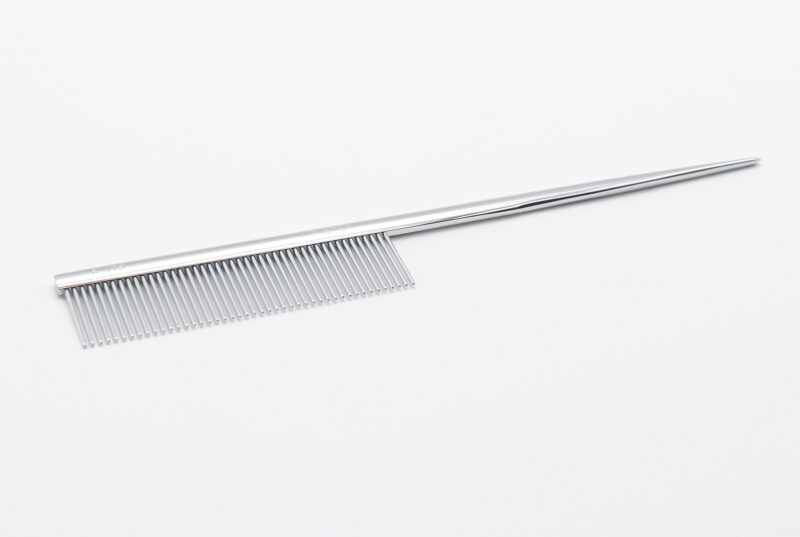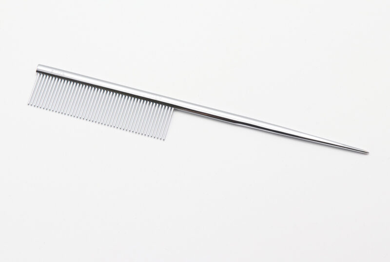 長毛種のラッピング時などに便利な、分け毛用ピン付きコーム。