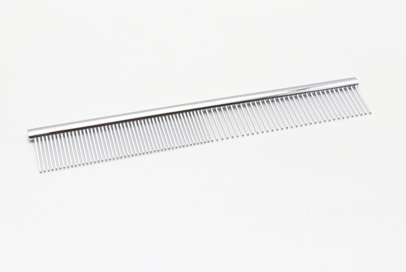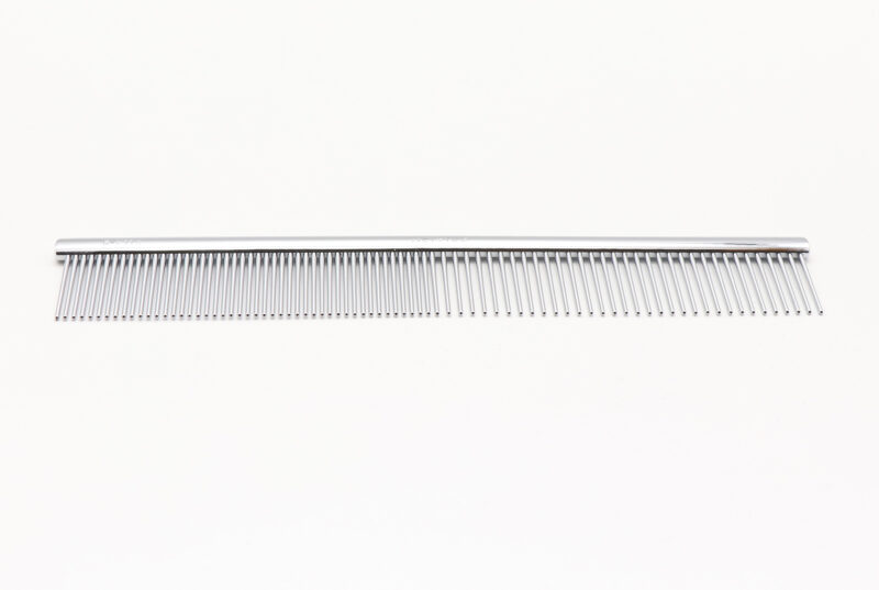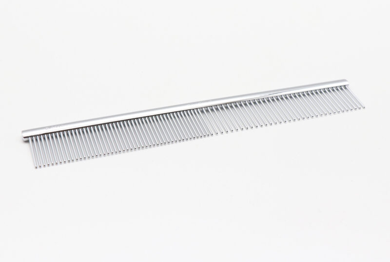 顔まわりのコーミングなど、細かな作業に便利なコンパクトサイズのコーム。