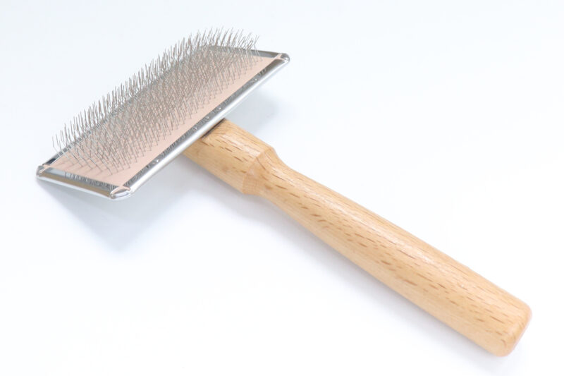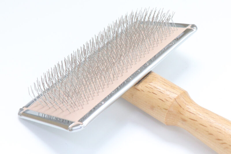 一般的なソフトスリッカーよりもさらに硬めに設計し、ピンの弾力をあえて抑えることで、密集したピンがしっかりと被毛をとらえます。